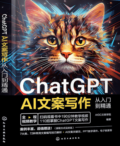 推荐词:本书是一本基于ChatGPT应用于文案领域的实操性书籍。书中从介绍AI文案工具开始,到运用ChatGPT生成不同的文案结构,再到运用ChatGPT生成不同类型的文案,由浅入深,从实用和有效的角度出发向读者介绍AI文案的内容,帮助读者理解并掌握ChatGPT生成文案的技巧,是广大文字工作者和文案相关工作人员不可或缺的参考书。