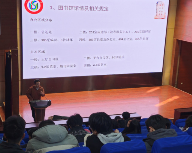 在图书馆概况介绍环节,主讲教师结合生动的PPT演示,从图书馆的发展历程、馆藏规模、服务理念等方面展开详细讲解。针对新生最关心的馆内布局问题,通过平面地图清晰标注了各楼层的功能分区,包括书库、阅览室、研讨室等,并逐一介绍了各部门的核心职责,让新生对图书馆的服务体系有了全面认知。