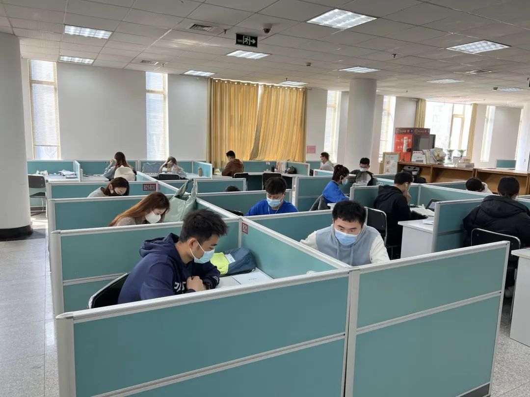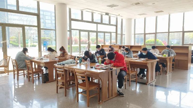 读者们戴着口罩,安静学习