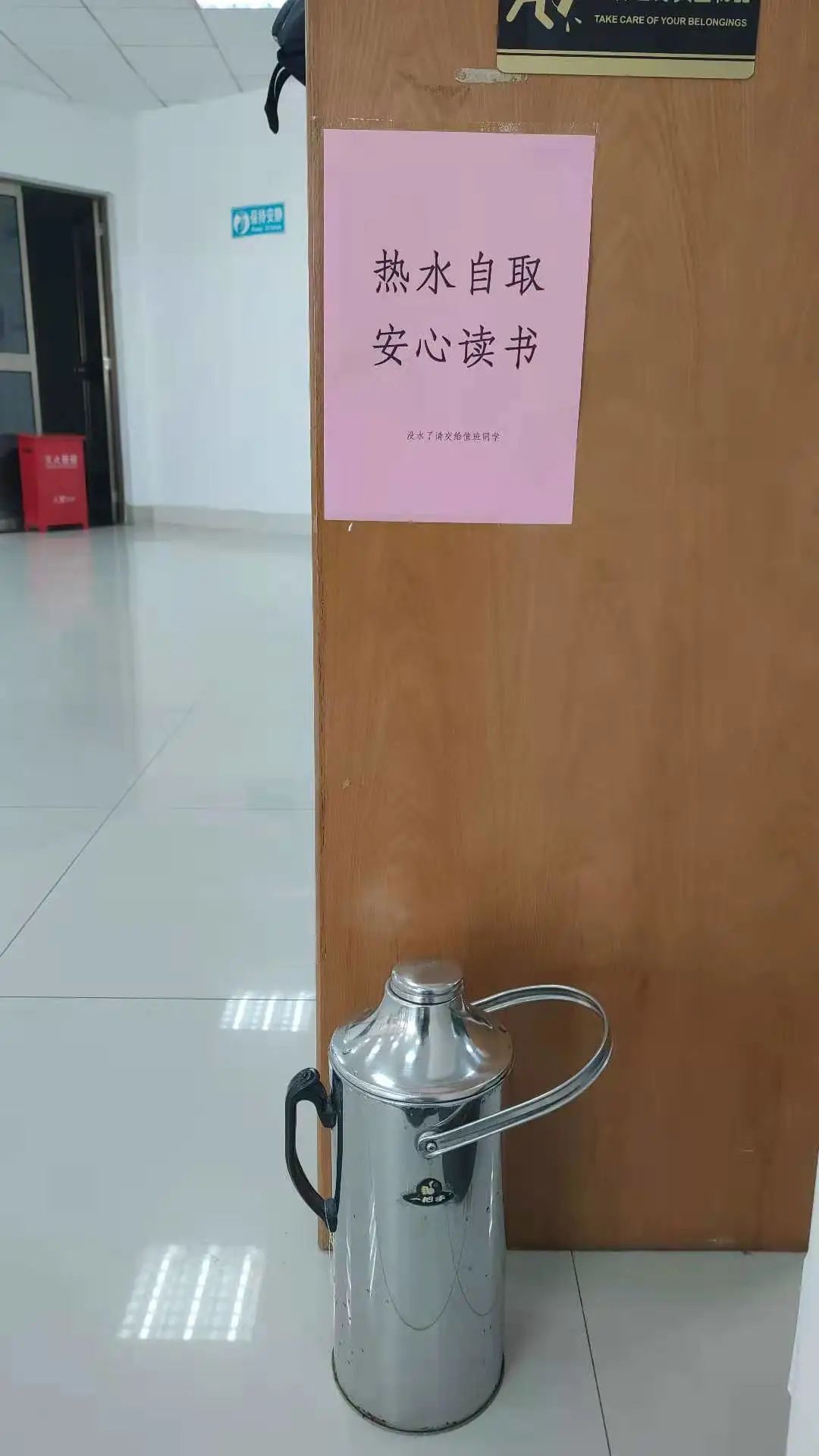 同时,因为目前只开放一二层,为了方便大家饮水,志愿者和驻馆老师们还特地准备了一壶热水放在阅览区供大家饮用,每日多次查看壶内剩余水量并及时补水。