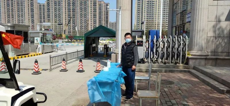 正在学校大门处值班的图书馆老师