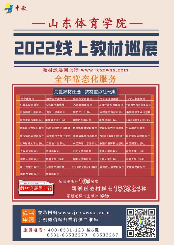 山东体育学院图书馆“2022全国教材巡展网上行”教材云展和样书申请活动于4月23日在线上启动 。