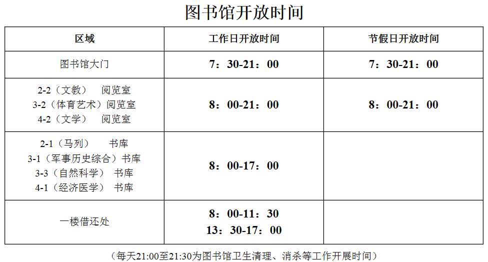2022秋季学期图书馆开放时间