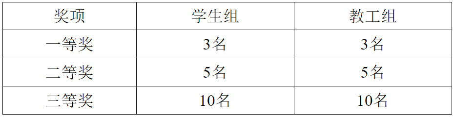 本次大赛设置学生组和教工组个人奖及优秀组织单位奖,并由大赛主办单位颁发获奖证书以及奖品。